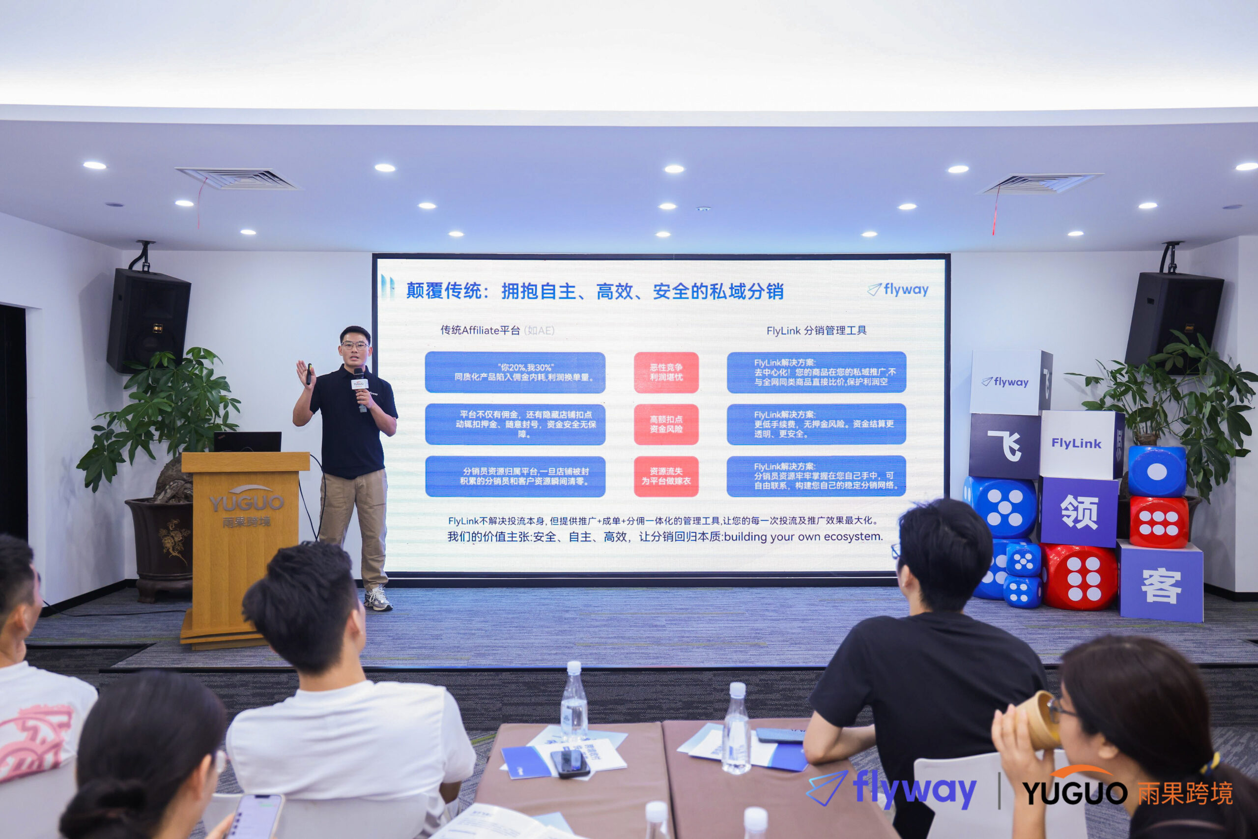 现场卖家朋友分享到通过FlyLink快速上手独立站搭建,并借助分销管理工具锁定20多名分销员,单月GMV提升超过40%,高效打开海外市场。FlyLink依托飞来汇的全球支付网络和专业风控合规能力,将卖家、分销员、买家三个角色高效链接,把卖家和分销员从繁杂的系统操作和对接中解脱出来,让其专注于卖货和营销,实现全球生意简单做,高效赚!此外,针对投流转化差、成本高的难点,雨果跨境给出专业解决方案,帮助卖家朋友通过站外引流抢占旺季流量。此外,针对投流转化差、成本高的难点,雨果跨境给出专业解决方案,帮助卖家朋友通过站外引流抢占旺季流量。